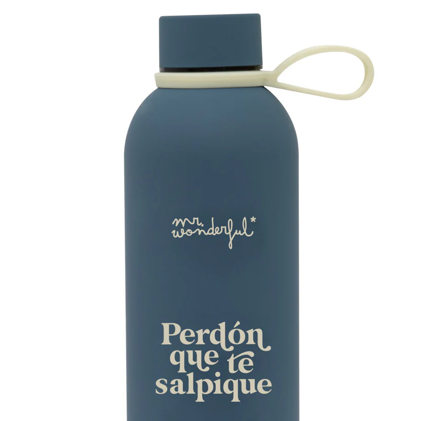 Botella térmica realizada en acero inoxidable 304 de doble capa. Aguanta las bebidas frías hasta un máximo de 24 horas y calientes hasta 12 horas. Con cierre hermético, inodora y ligera. Libre de BPA. Su tapón incorpora una cuerda, lo que la hace más fácil de transportar. Cuenta con un divertido mensaje impreso en ella. Capacidad: 500 ml.