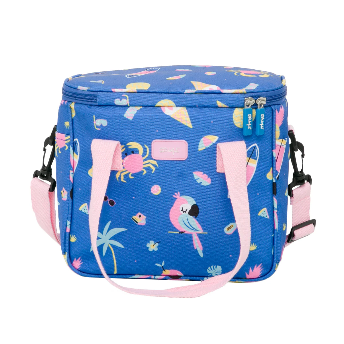 Nevera de playa con mensaje y diseño Mr. Wonderul, ideal para mantener los alimentos o bebidas fríos o calientes por un corto espacio de tiempo. La parte exterior de la nevera está realizada en poliéster, mientras que la parte interior está forrada de aluminio para mantener la temperatura. Además, cuenta con cierre de cremallera y unas cómodas asas para transportarla.