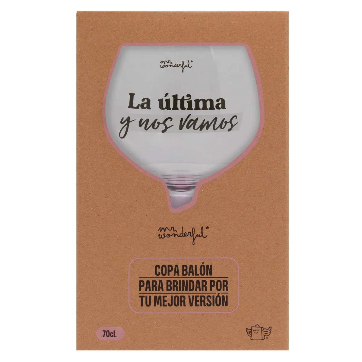 Copa de balón con mensaje, realizada en vidrio. Capacidad: 70 cl.