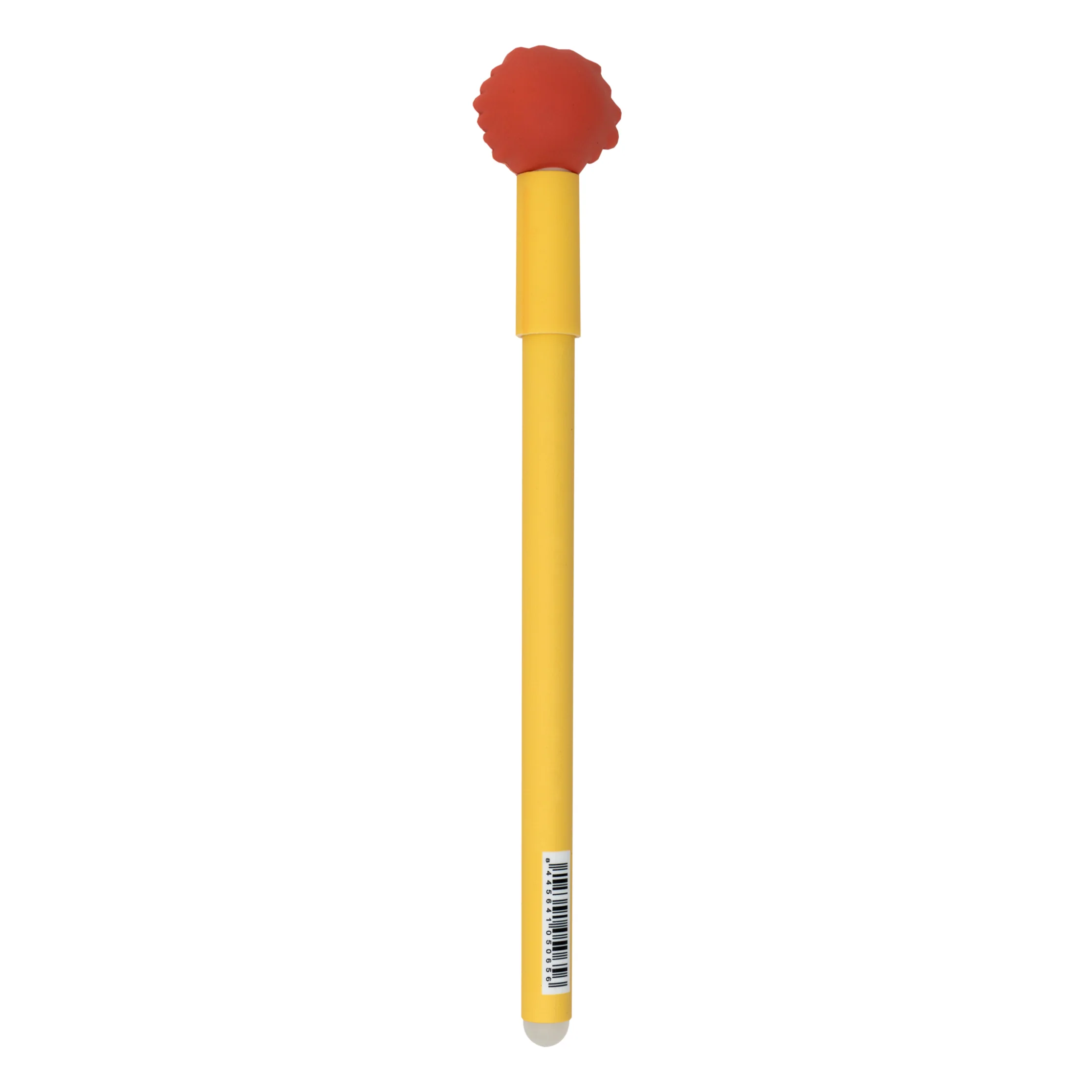 Boli con tinta borrable de color azul y el león Simón en uno de sus extremos.