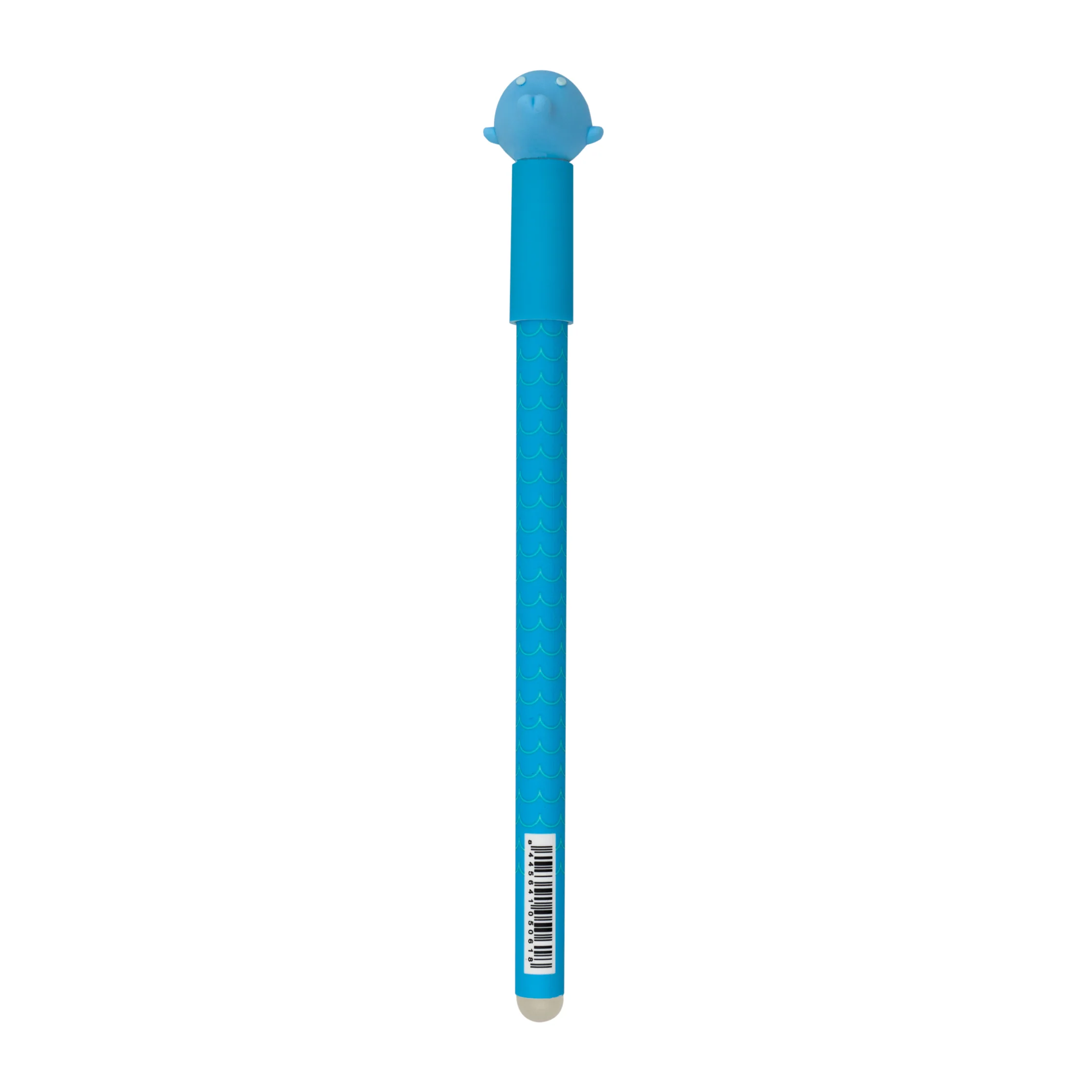 Boli con tinta borrable de color azul y el narval Karl en uno de sus extremos.