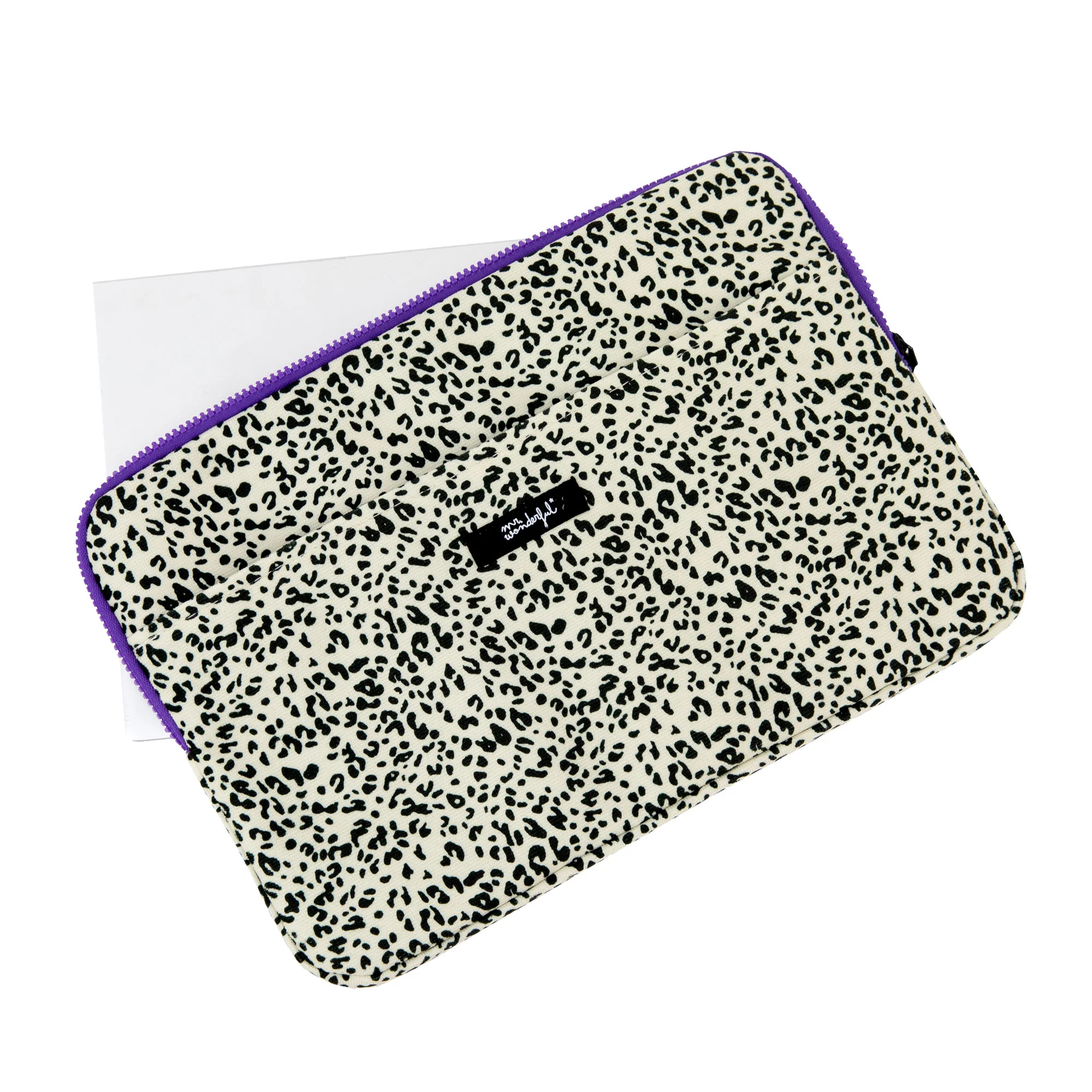 Funda para portátil de 13-14", acolchada y con estampado animal a topos. Con cierre de cremallera, la cual, al igual que su tirador, es de con un tono vibrante que es tendencia en estos momentos y que destaca frente al estampado general de la funda.