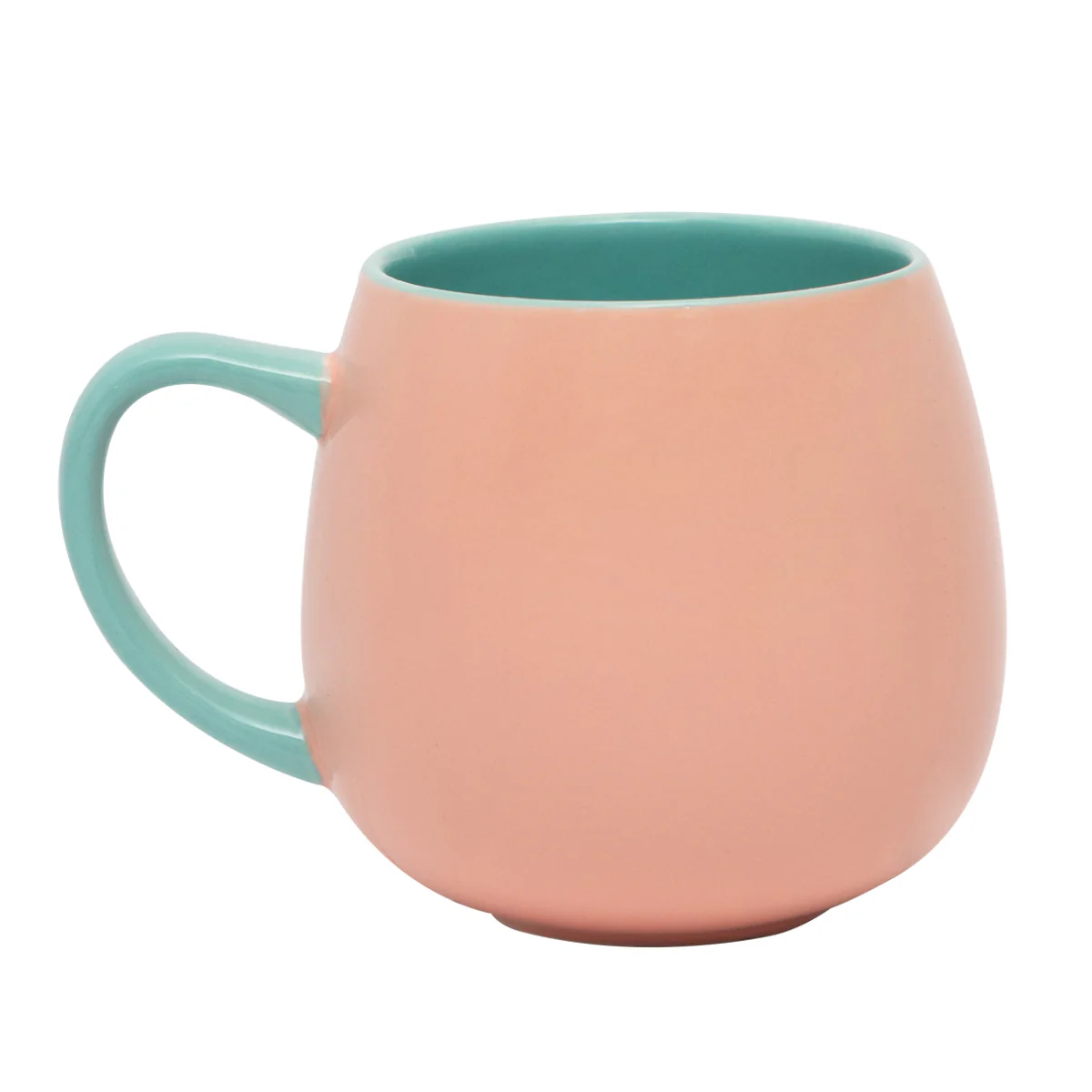 Taza de cerámica con nuestras cerezas en relieve y un sencillo pero bonito mensaje en español. Su asa y el interior son de distinto color al del exterior de la taza, lo que le aporta originalidad.