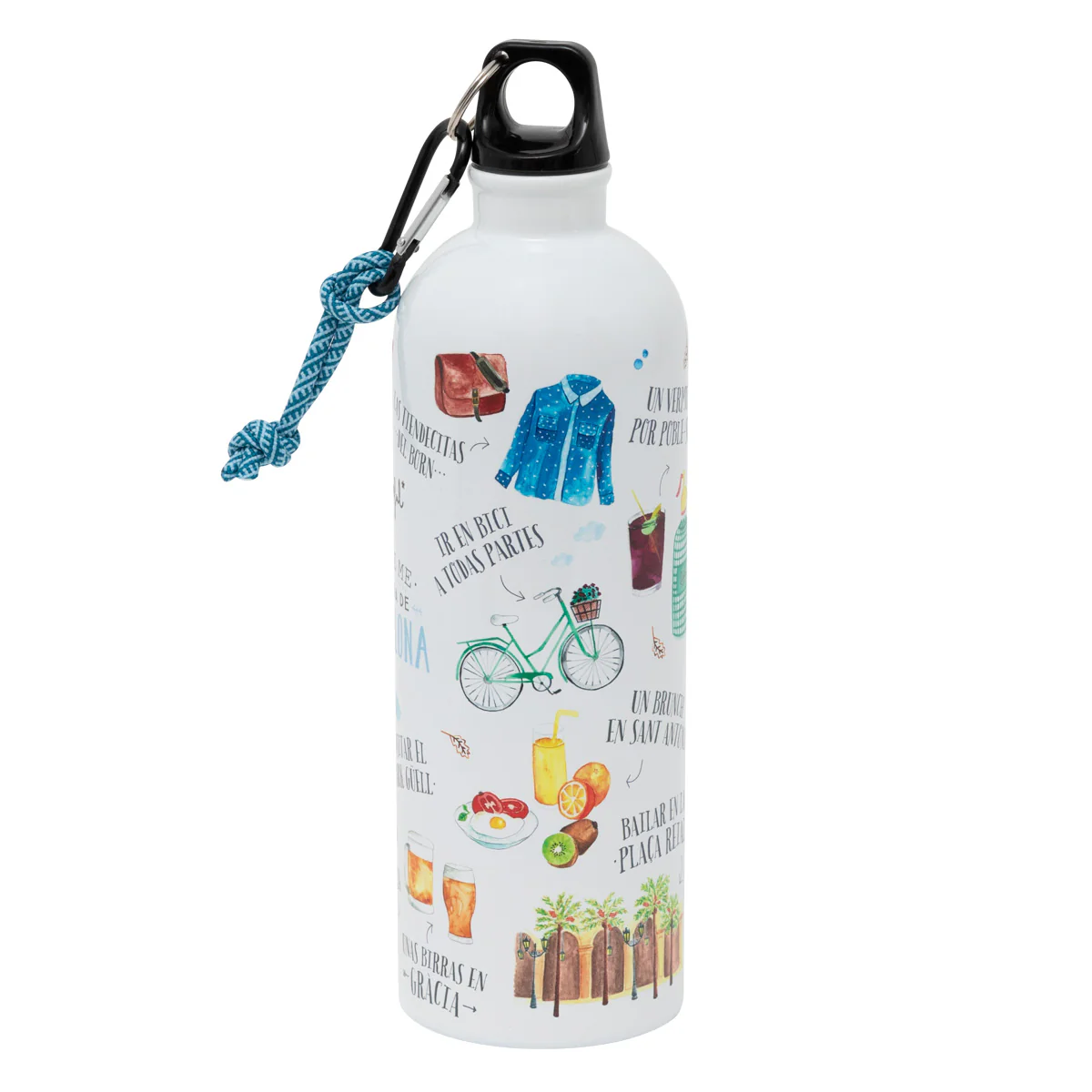 Botella de acero inoxidable de doble capa con algunas de las mayores atracciones turísticas de la ciudad de Barcelona. Incluye mosquetón en el tapón para poder colgarla. Con cierre hermético, mantiene las bebidas frías durante un máximo de 24 horas y calientes durante un máximo de 12 horas. Libre de BPA. Capacidad: 750 ml.