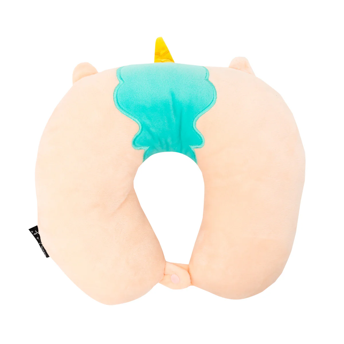 Cojín cervical infantil con forma de unicornio. Está realizado en poliéster.