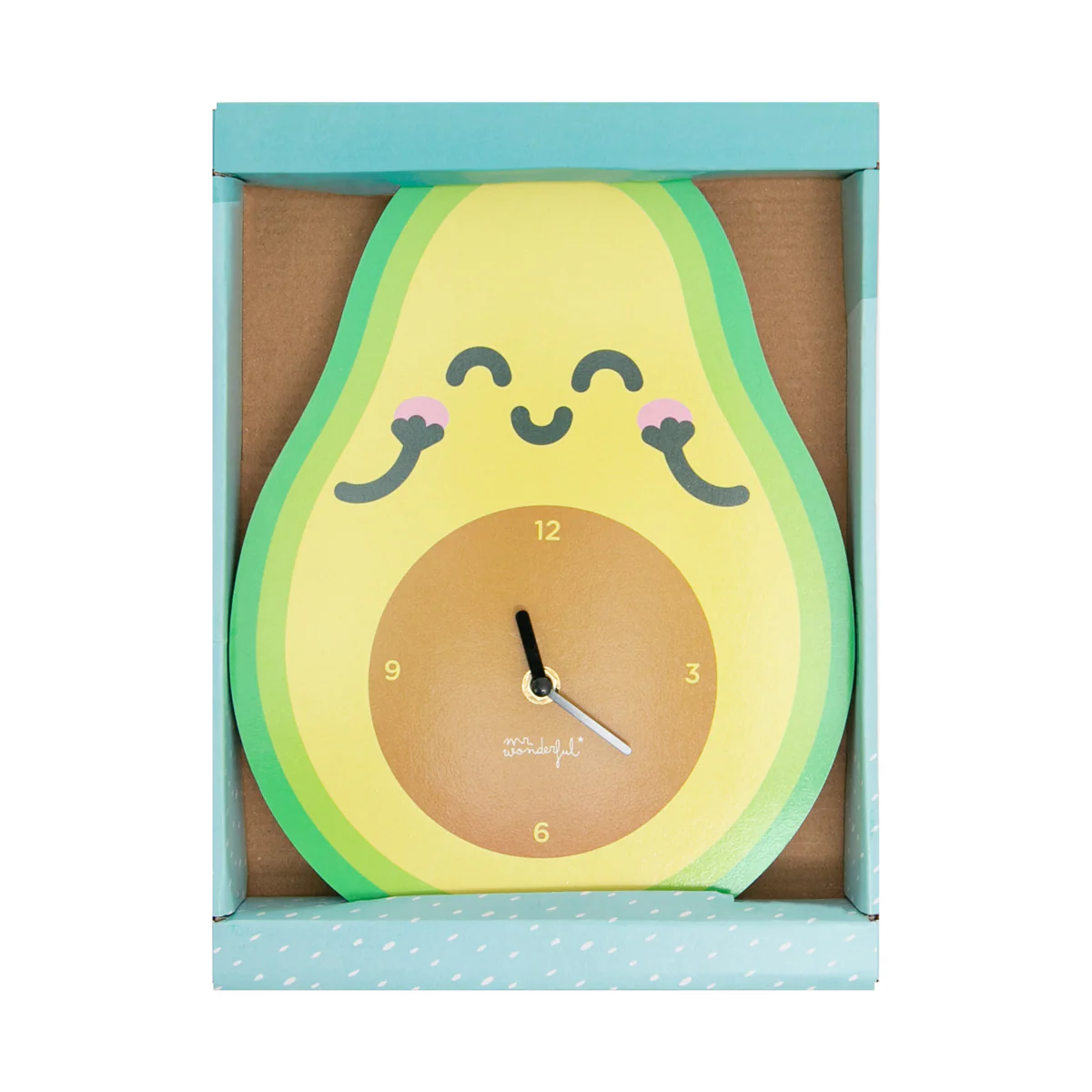 Reloj de pared decorativo con forma de aguacate Mr. Wonderful. Es muy fácil de colgar y su mecanismo es de cuarzo. Funciona con 1 pila AA de 1.5 V (no incluida).